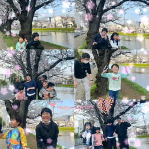 手作りの桜の木の下でお弁当を食べました🍙💓